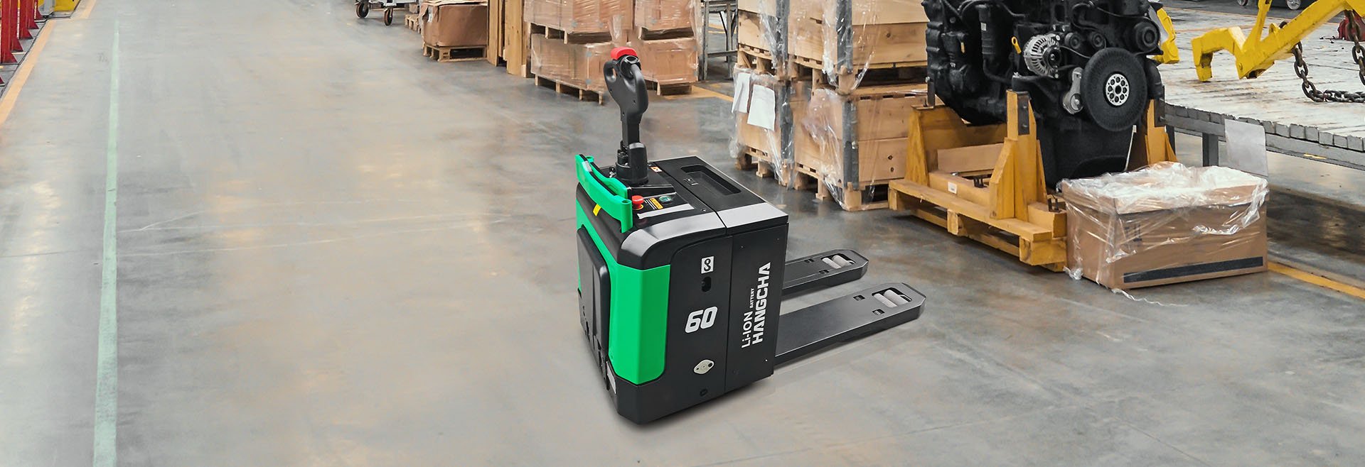 The A series lithium battery 4-6t pallet truck can be used for handling large and heavy cargoes in mold factories, motor factories, PV and other industries. The compact size and strong bearing capacity allow it to handle heavy cargoes in narrow passages.