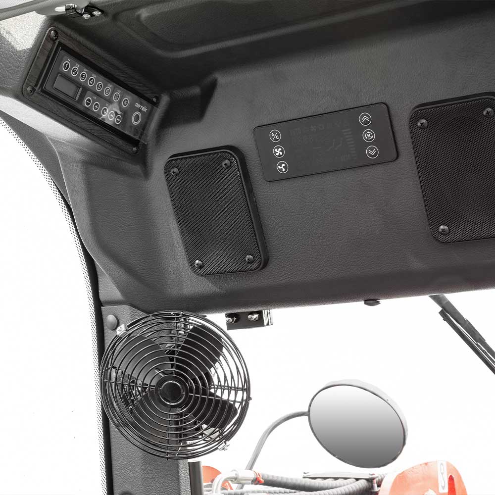 The cab can be equipped with air conditioning, radio, and USB charging port as option.