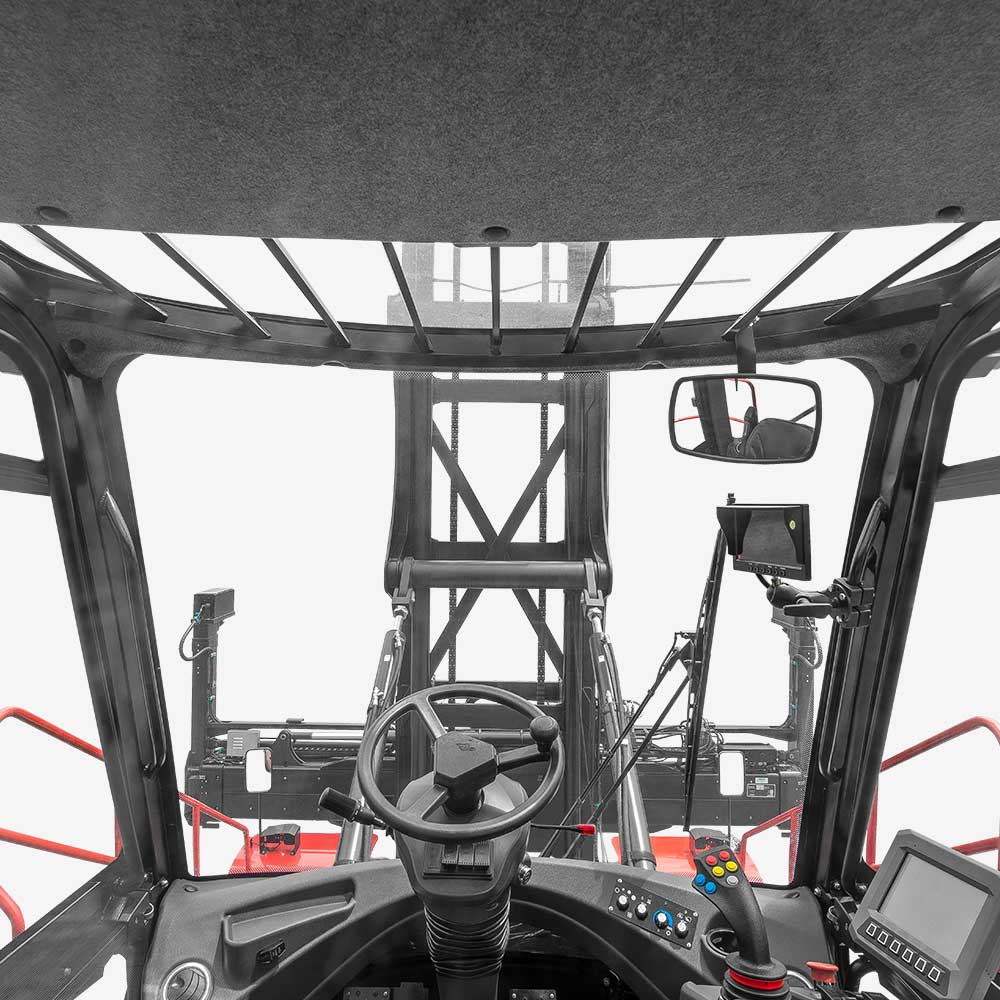 The mast is made of high-strength steel and has an ultra-wide structure designed. The installation point of the inclined oil cylinder is arranged at a high position to improve the rigidity and stability of the truck. The truck’s heat dissipation management system automatically adjusts the heat dissipation intensity, so that each system can quickly enter the efficient operating state. The large heat dissipation capacity design ensures the requirements for the heat dissipation in high temperature environments to be met.